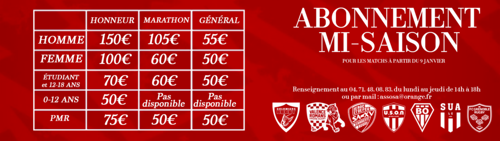 🎟️ Un abonnement mi-saison, valable dès le 9 janvier janvier pour faire vibrer Jean Alric toute la seconde partie de saison !