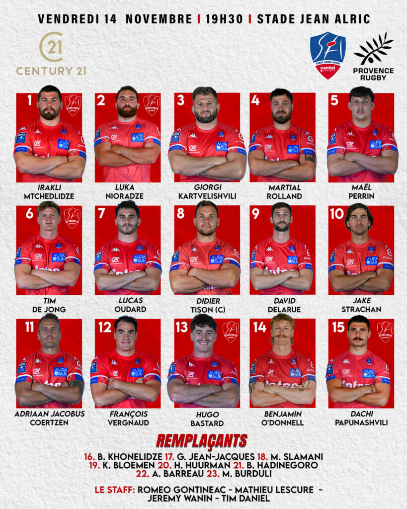 ~ Voici la composition de votre équipe pour la onzième journée de Pro D2. Les 𝐑𝐨𝐮𝐠𝐞 & 𝐁𝐥𝐞𝐮 reçoivent les provençaux d’Aix. ~