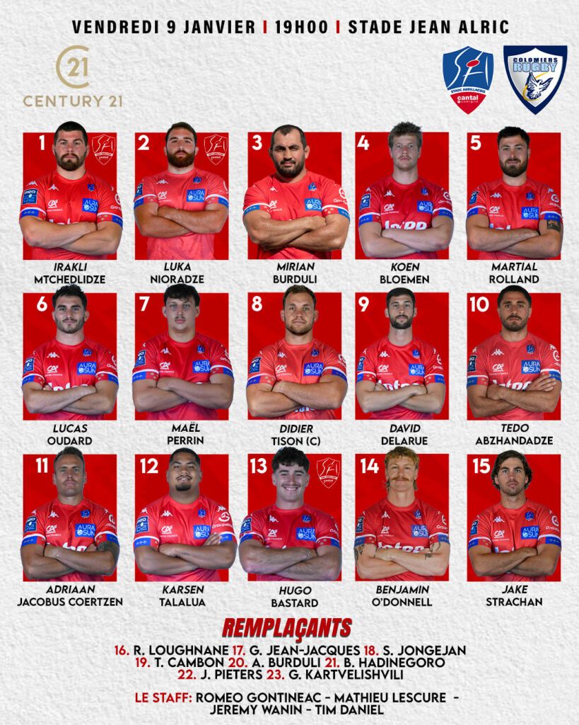 ~ Voici la composition de votre équipe pour la seizième journée de Pro D2. Les 𝐑𝐨𝐮𝐠𝐞 & 𝐁𝐥𝐞𝐮 reçoivent les Columérins pour la première de l’année ~